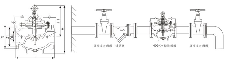 600X electric control valve consists of main valve, solenoid pilot valve, needle valve, ball valve, microfilter and pressure gauge to form a hydraulic control takeover system. Through the solenoid pilot valve can be opened and closed on the remote control valve. After installing additional devices, you can control the speed of opening and closing. Electrically controlled hydraulic control valve using the pilot valve to open and close the valve to save energy. Can replace other valves large electric devices. Electrically controlled hydraulic control valve products are widely used in high-rise buildings, living areas and other water supply pipe network systems and urban water supply projects.