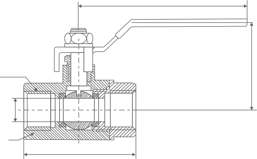 Q14F-16 Brass Tee Ball Valve (Model L) specifications and dimensions