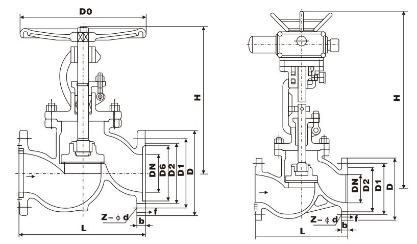 三、J41H/Y國標截止閥主要外形和連接尺寸